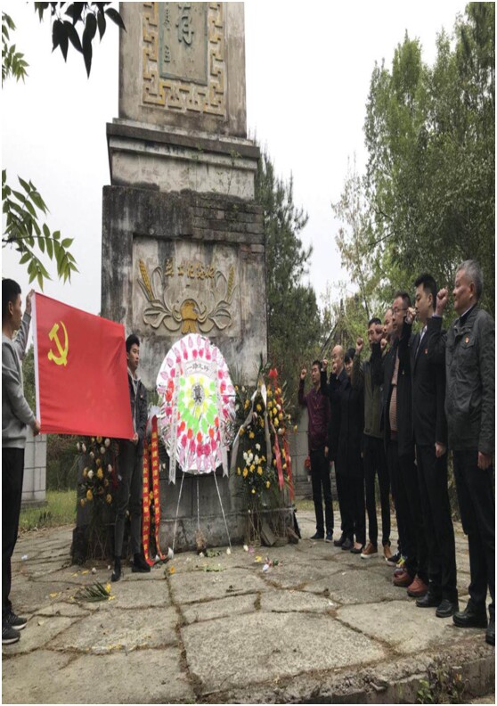 活动中,全体党员在烈士陵园抗日烈士纪念塔前默哀,敬献了花圈并行默哀礼,向烈士们表达了崇敬缅怀之情。同时,党员们还面对党旗重温了入党誓词,进一步表达了对党的信仰与忠诚。