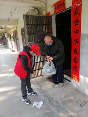 2月21日上午,市供水总公司海慧家属小区院内几个红马甲身影在来回穿梭忙碌着,紧张有序地为小区居民分发代购的蔬菜、食品等生活物资,把物资送至年老体弱、居家隔离居民家门口。
