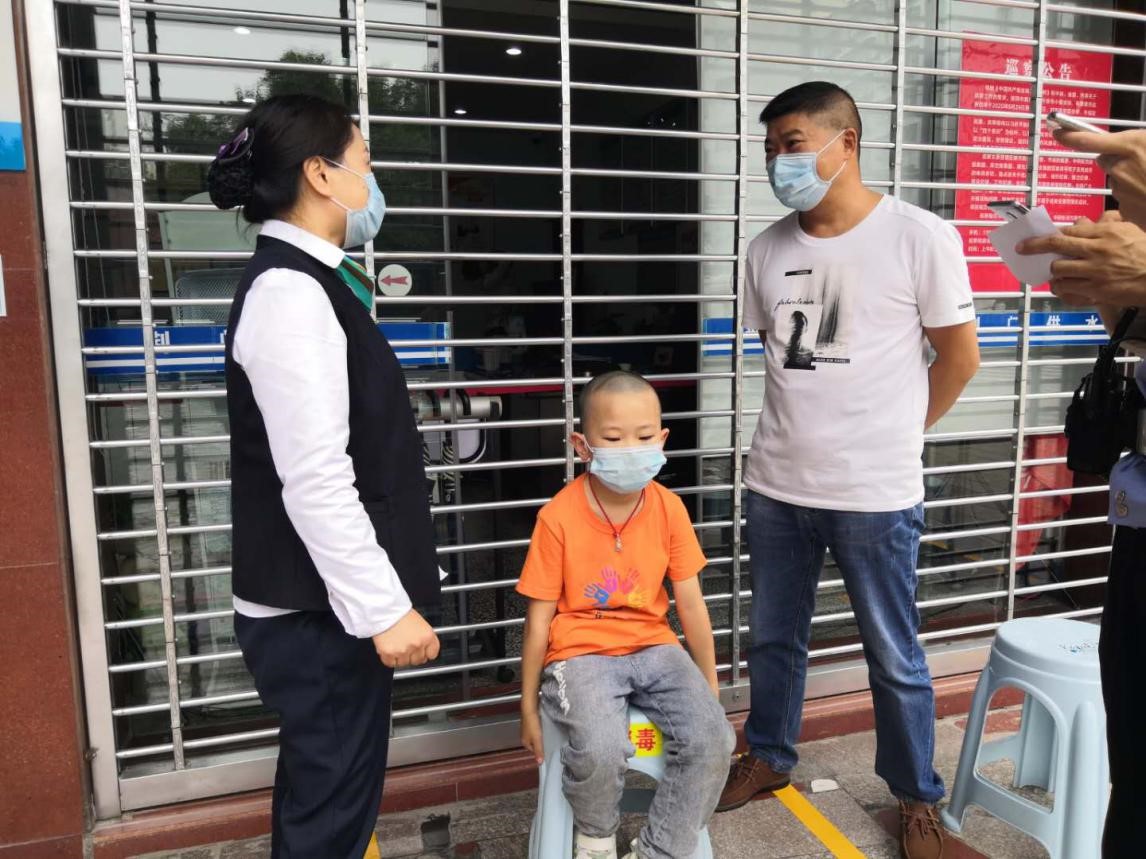 当日中午,龙泉营业厅大堂经理王萍发现一名年幼的小男孩独自坐在营业厅门前的马路边哇哇大哭,脸上一脸惊恐。极具责任心和爱心的王萍急忙上前询问发生了什么事?从孩子口中得知,他是大悟人,上午和妈妈、妹妹到西宝山游玩时走散了,又不知道回家的路,他很着急,不知道该怎么办。