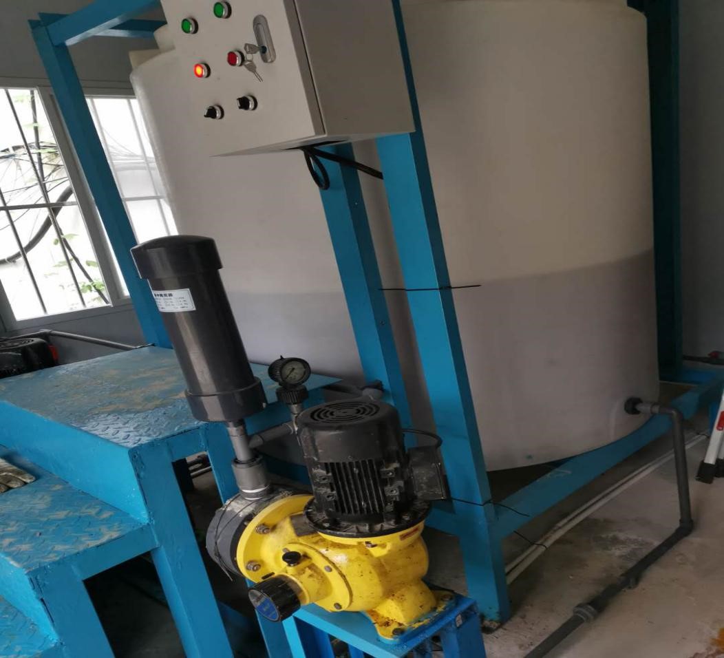 加矾设备采用计量泵手动控制型投加,根据当日水质检验情况由水厂运行人员进行操作,既可提高加矾的精确量提升出厂水质,又可减少原水浪费,节约能耗。据介绍,该设备正式投运后,水厂制水工艺还将显现更大的优越性。