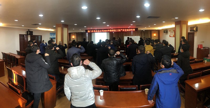 荆门供水作为行业的标杆企业,安全生产是重中之重,为积极营造安全生产氛围,提高施工人员的安全防范意识,争取做到“防患于未然”,以危险源辨识为源头,以安全生产培训教育为保障,以创建隐患“零”容忍,操作“零”违章活动手段,实现安全“零”伤害目标,全面打响节后安全生产战役。