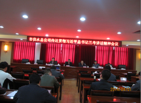 4月1日,市供水总公司举行党员集中学习,传达贯彻习近平总书记兰考讲话精神、市委书记万勇讲话精神,对公司党的群众路线教育实践实践活动进行安排部署,并组织观看电影《焦裕禄》。