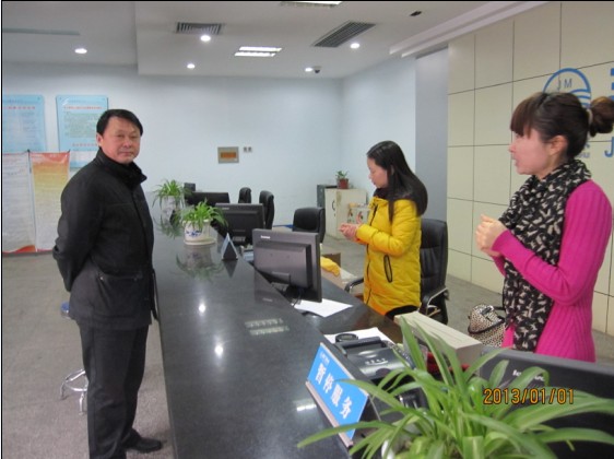 2013年1月1日清晨,荆城户外温度-7℃。八时,总经理陈卫国走到城区营业所收费大厅,向大家致以新年的祝福和问候,感谢大家在节假日仍坚守岗位,为用户提供优质服务,肯定了营业线的同志们多年来一直坚持节假日不休息值班的做法。