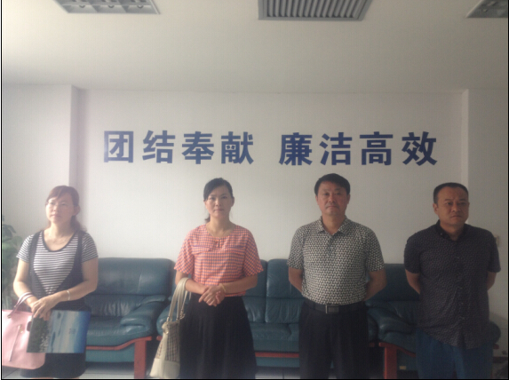 荆门市委委员、团市委书记李莉丽(左二)代表市人大走访市人大代表、市供水总公司总经理陈卫国(右二),同时调研公司共青团工作。图为总经理陈卫国、副总经理、公司团委书记曾波(右一)陪同在调度中心考察时情景。