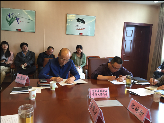 4月28日,公司召开党委中心组扩大会议,对“两学一做”活动做出安排部署,并进行系统理论学习。会前,党委书记、总经理陈永根、党委副书记、纪委书记、工会主席徐黎明分别与各支部书记、各单位(处室)负责人签订2016年党风廉政建设责任状。