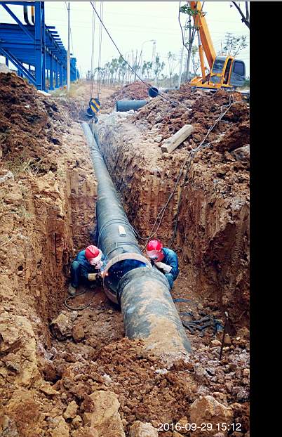 盈德气体是荆门石化油品升级改造配套项目,是荆门市委、市政府重点招商引资项目,落户于化工循环产业园。为服务好化工循环产业园,荆门市供水总公司19日接到铺设盈德气体专用DN600供水管道施工任务后,打破常规,当晚就安排人员、分解任务;9月20日上午完成施工队伍组织,工地测量、工程材料采购,下午立即进场沟槽开挖。施工期间正逢207外环线与阳光大道部分路段封闭改造,公司积极与道路改造方协调,利用每天道路施工间歇,将20根钢管100根球墨管顺利运转至工地。为了能在预定时间内完成任务,工人每天早晨5点半进入施工现场,一直到晚上10点施工结束,中午不休息,早、中、晚三餐就在现场吃快餐。十天铺通盈德气体专用840米DN600供水管道。