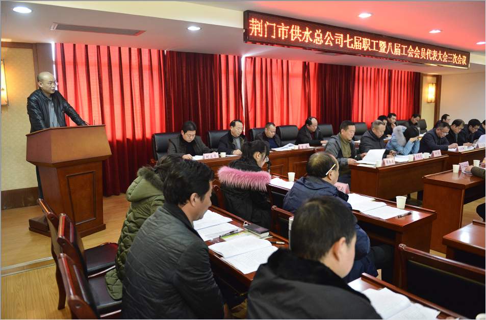 会议在庄严的国歌声中开幕。公司党委书记、总经理陈永根作了《2016年度公司工作报告》,认真总结了2016年度取得的各项成绩;供水设施建设投资体制理顺、5条道路供水管道改迁提前完成、国宾酒店环评获批;管党治党高度前所未有、项目建设力度规模空前、公司主辅业产值连续五年双过亿,总额首次突破3亿元等。客观分析了当前企业发展存在的机会和挑战,并对2017年度的工作作出了展望。党委委员、工会主席马兆芳,党委委员、总会计师刘高轶分别作了《2016年度工会委员会工作报告》、《荆门市供水总公司2016年度财务预算执行及2017年财务预算草案编制报告》、《荆门市供水总公司2016年度工会经费执行及2017年工会经费预算情况报告》。职工代表提案审查小组组长卞军虎对七届职工暨八届工会会员代表大会二次会议职工代表提案办理情况作了报告,七届职工暨八届工会会员代表大会二次会议共收到34份职工提案,实际需要回复和办理的提案为32份,已办结的有27份,正在落实的5份,报告中对正在落实的提案进行了说明。工会副主席张春生对本次会议征集职工代表提案作了报告,本次会议共收到19份提案,其中涉及经营管理的5份,技术改革的1份,教育培训的1份,薪资福利待遇的12份。会议期间,与会代表给予六个报告充分肯定,围绕各项工作报告,进行了热烈讨论,提出了许多宝贵的建议和意见。