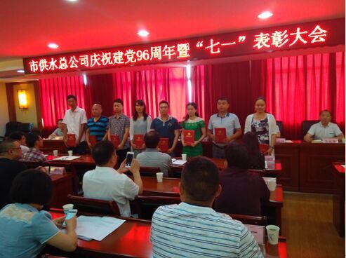 6月29日上午,市供水总公司召开党员大会,庆祝中国共产党成立96周年,举行公司2017年度新党员入党仪式,表彰公司先进党支部、优秀共产党员标兵和优秀共产党员,激励和引导公司各党支部和广大党员干部更好地履职尽责、奋发有为,全面推动公司各项工作再上新台阶。党委书记、总经理陈永根出席会议并讲专题党课,党委班子成员、全体党员参加会议。