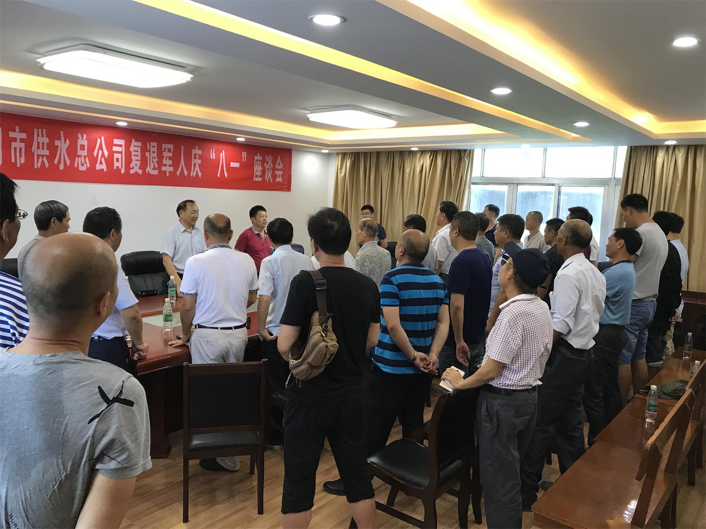 7月28日上午,在八一建军节来临之际,市供水总公司组织60余名复退军人开展庆“八一”走访慰问荆门市武警支队活动,并与他们齐聚一堂,共话八一。