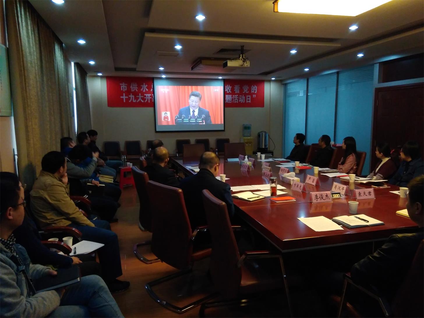 10月18日上午9时整,中国共产党第十九次全国代表大会(以下简称十九大)在全体党代表的国歌声中开幕。市供水总公司各个党支部也迎来了一个特殊的“党员主题活动日”,全体党员干部整齐端坐党员活动室,怀着无比激动地心情实时观看十九大开幕式。
