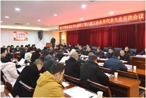 1月2日下午,市供水总公司七届职工暨八届工会会员代表大会五次会议胜利召开。大会听取并审议了2017年度公司工作报告、2017年度工会委员会工作报告、2017年度财务预算执行和2018年财务预算草案编制报告、2017年度工会经费执行和2018年工会经费预算情况报告、七届职工暨八届工会会员代表大会三次会议职工代表提案办理情况报告及本次会议征集职工代表提案报告。公司党委成员和职工代表、工会会员代表、列席代表共100余人参加会议。