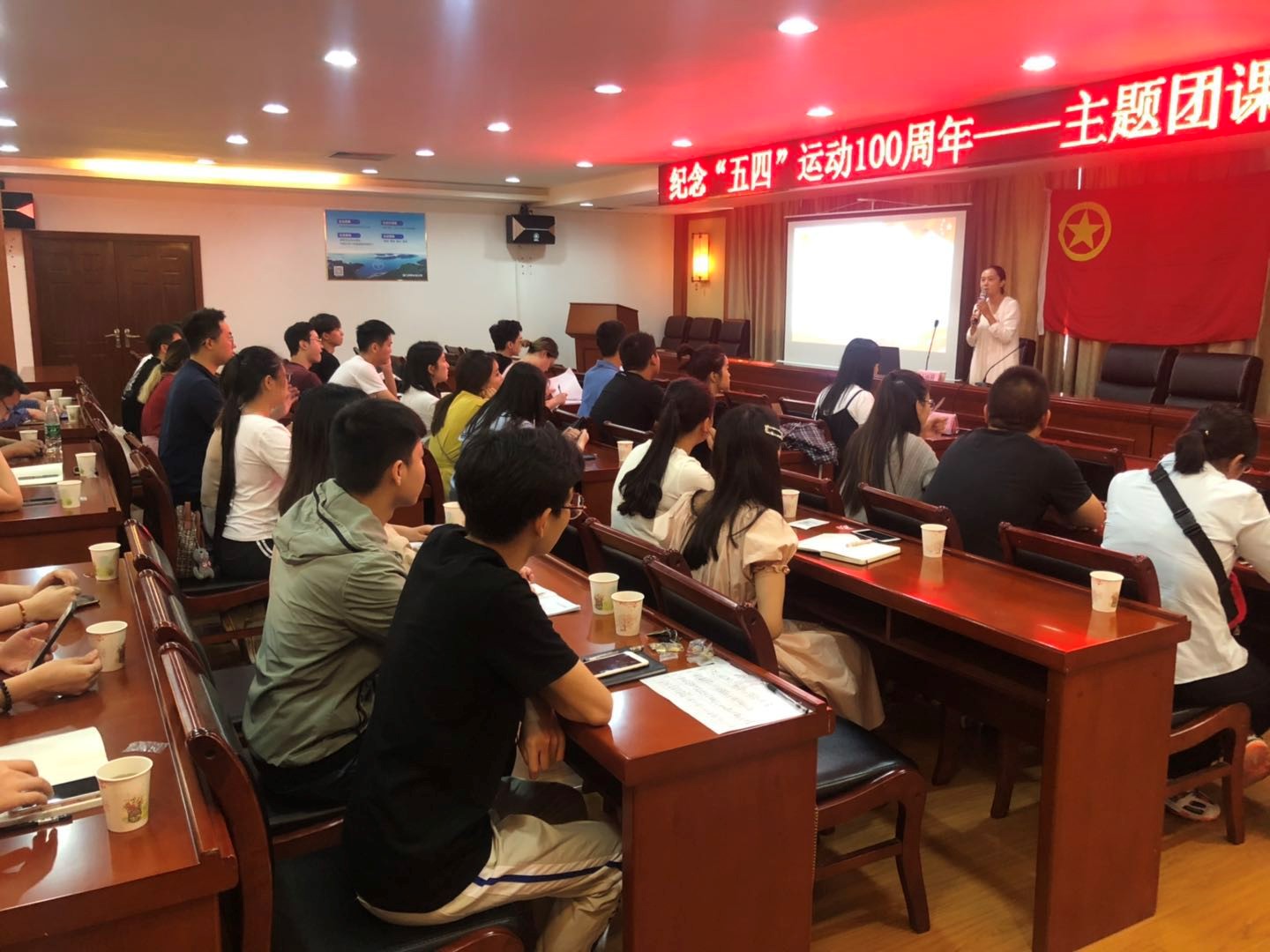 此次团课邀请团市委青发部团干、青年讲师团讲师、荆门公益小天使项目负责人授课。讲课对一百年前的五四运动进行了深入浅出的讲解。