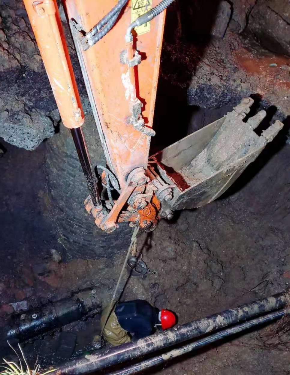 1月28日8时,白云大道农行家属区门口DN100管道爆裂,因在人行道上,地下管线交错复杂,不能用工程机械开挖,黄磊带领班组人员硬是挨着管线用手刨钎撬,人工开凿出抢修坑,在连续奋战3个小时后,赶在用水高峰期抢修完毕给用户通水。这边刚抢修完,那边又接到值班电话通知建设街DN200管道漏水,如不及时抢修,在漏水失压的情况下会造成大面积用户无水,黄磊没有一丝懈怠,立即组织人员、机械到现场,简单吃了一桶泡面又投入到抢修工作中,抢修现场居民感动不已,纷纷送来手套、口罩、方便面等慰问品。下午3时,多辉农产品市场因封路时挖机将DN50管道拉断,考虑到已经连续奋战多时,公司领导准备安排其它维修班组去抢修,其他队伍集结需要时间会耽误疫情控制,而且位处垃圾堆有感染风险,黄磊主动请缨出战。晚上22时,黄磊又接到出警电话,因杨家桥DN300管道爆裂,路上汪洋一片。他其实抢修完才到家一会,但黄磊没有迟疑,立即联系机械进场,在班组微信群通知集结路线,沿路接人,在他的带领下,从维修材料准备到人员机械到位用了不到40分钟,因开挖后形成的基坑深度达近5米,为保障人工深基坑作业安全,黄磊一刻也没离开基坑,直到凌晨5时抢修完毕。