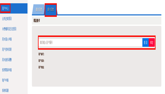 2.点击“用户中心”,选择“表卡信息”,输入10位数字用户编号点击“绑定。”